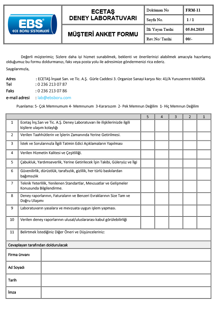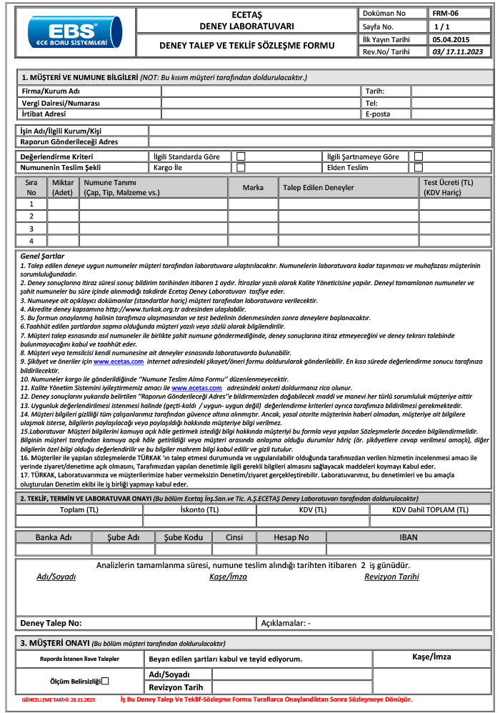DENEY LABORATUVARI FORMLARIMIZ |