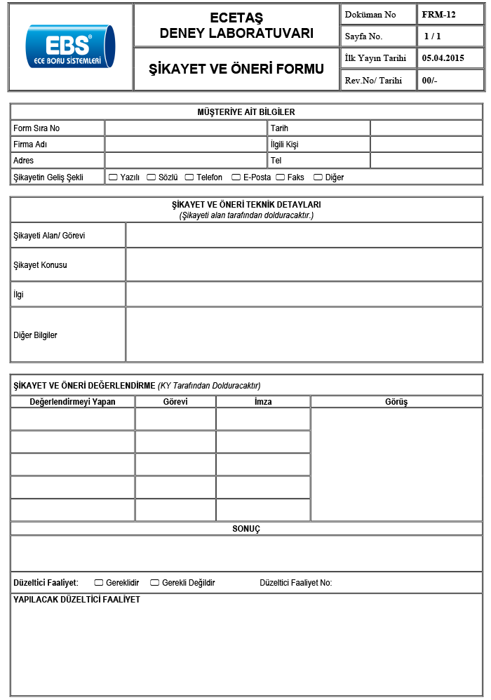 - Şikâyet ve öneriler için aşağıdaki şikâyet/öneri formu doldurularak gönderilebilir. En kısa sürede değerlendirme sonucu tarafınıza bildirilecektir.