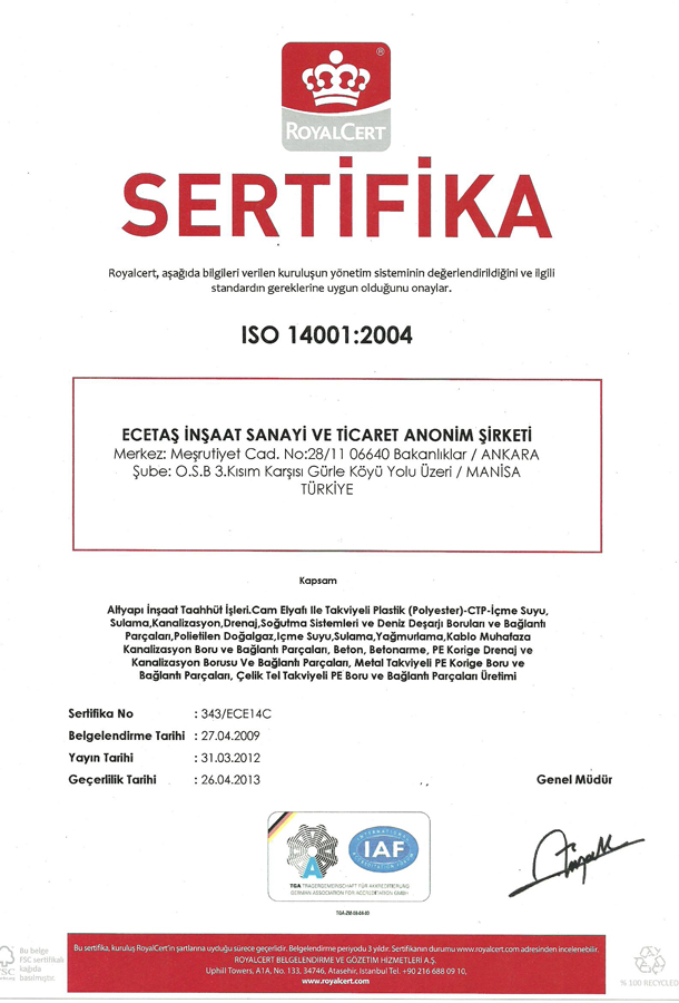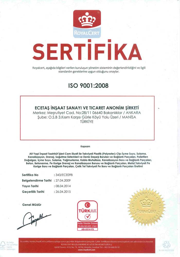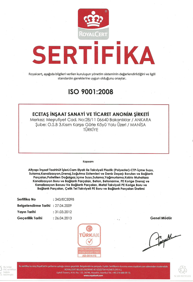 Hammadde tedarik aşamasından başlayıp üretilmiş boruların standartlar dorultusundaki testlerinin yapılmasına kadar teknik anlamda sürdürülen kalite anlayışımız, müşteri tarafından fabrika stok sahasından alınan ve yerine döşenen borular için verilen ileri uygulama desteği ve know-how desteği anlamında devam etmektedir. Fabrikamızda üretilen her ürün kalite kontrol sürecinden geçirilmektedir.