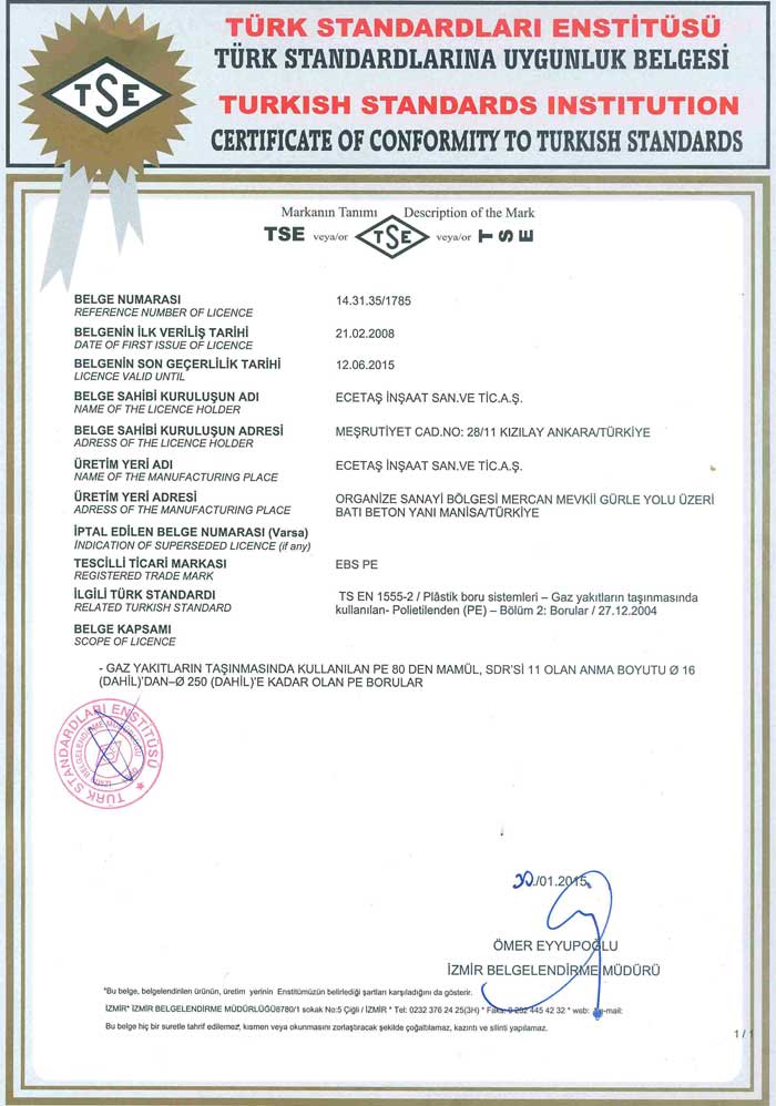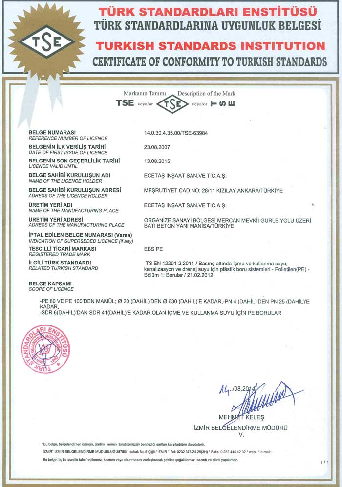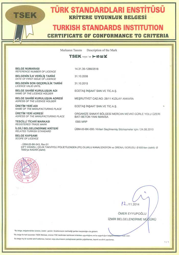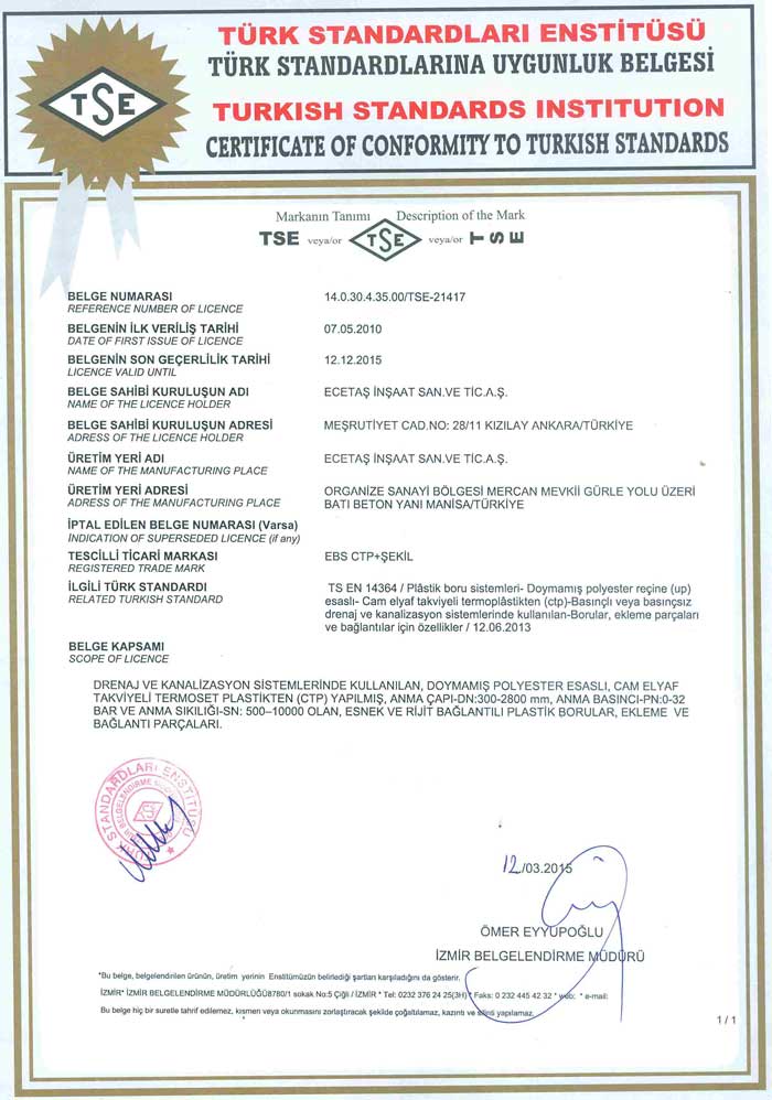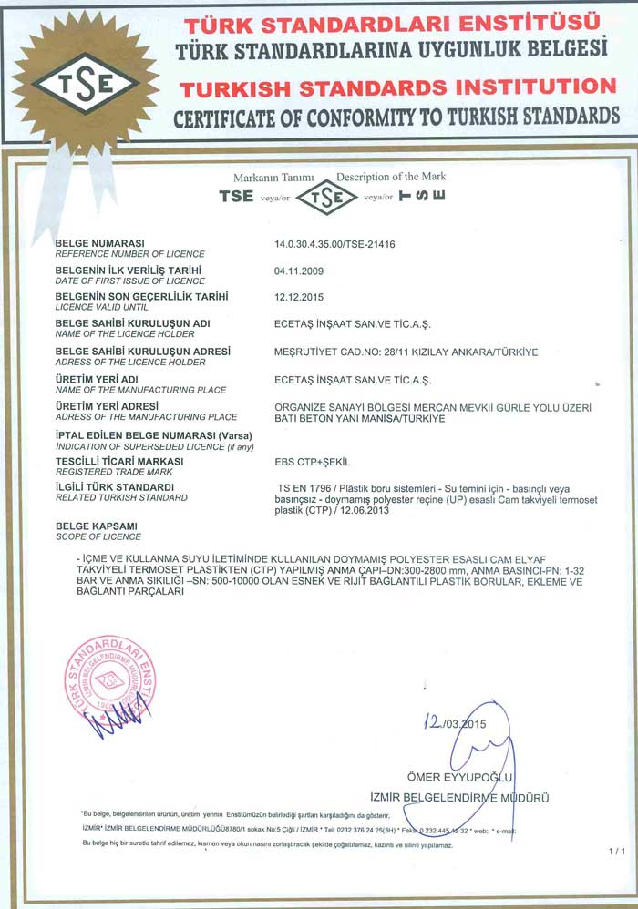 Tüm deneyler ulusal ve uluslararası standartların gerekliliklerine göre gerçekleştirilmektedir. Talep edilmesi durumunda döşenmiş EBS boruları için uygulanması gerekli arazi deneyleri de ileri uygulama desteği kapsamında süpervizörlük hizmeti olarak tarafımızdan verilmektedir.