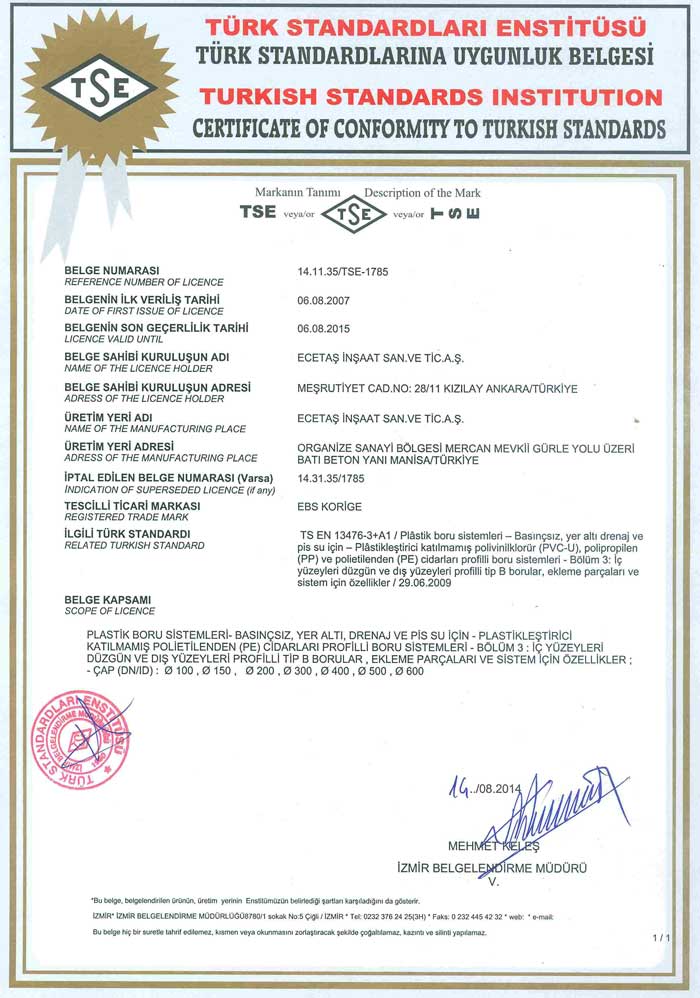 Üretim tekniği ve boru cinslerine göre uygunluğumuz olan standartlar;